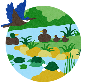 園内には多くの野鳥が集まり、豊かな生態系が息づいています。ビオトープの再生など自然と向き合う課題にオープンに取り組みながら、専門家や研究者とともに自然環境の保全に取り組んでいます。